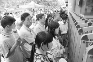 圖⑤考點大門外等候的家長翹首期盼。