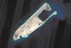 中國在南沙群島部分駐守島礁上的建設(shè)將于近期完成陸域吹填工程   經(jīng)向有關(guān)部門了解,中國在南沙群島部分駐守島礁上的建設(shè)將于近期完成陸域吹填工程。這是完成陸域吹填工程后的永暑礁衛(wèi)星圖片。