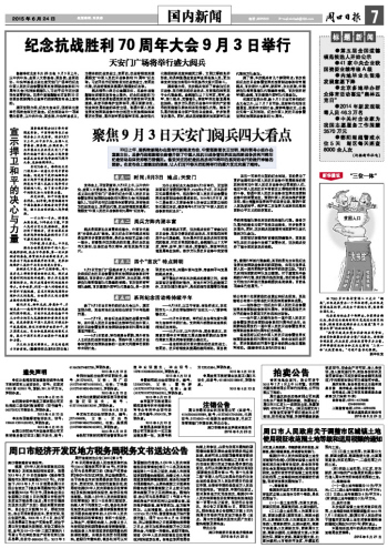 紀念抗戰(zhàn)勝利70周年大會9月3日舉行