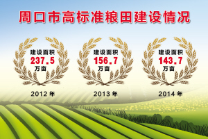 糧食生產(chǎn)之所以能夠在高起點上持續(xù)增產(chǎn),高標(biāo)準(zhǔn)糧田建設(shè)功不可沒。高標(biāo)準(zhǔn)糧田建設(shè)自2012年開始,我市共規(guī)劃高標(biāo)準(zhǔn)糧田面積900萬畝(含鹿邑),計劃到2017年完成農(nóng)田基礎(chǔ)設(shè)施建設(shè),到2020年全部完成配套服務(wù)體系建設(shè),糧食綜合生產(chǎn)能力達(dá)到160億斤以上。截至2014年底,全市累計整合農(nóng)業(yè)項目資金59億多元,累計建成高標(biāo)準(zhǔn)糧田面積537.9萬畝,占全市總規(guī)劃建設(shè)面積的59.8%。田成方、林成網(wǎng)、渠相通、路相連、旱可澆、澇能排的高標(biāo)準(zhǔn)糧田建設(shè)的大力實施,極大地提高了我市糧食綜合生產(chǎn)能力,把因干旱、澇災(zāi)、低溫凍害等各種自然災(zāi)害造成的損失降到了最低限度。