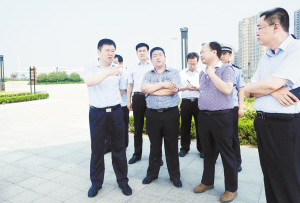 本報訊 (記者 李鳳霞)7月14日,市委書記、市人大常委會主任徐光輕車簡從,帶領(lǐng)市住建局、市交通局、市規(guī)劃局、市城管局、市開發(fā)區(qū)、市東新區(qū)、周口港區(qū)主要負責(zé)同志,冒著酷暑,深入中心城區(qū)部分重點項目建設(shè)工地實地調(diào)研,現(xiàn)場解決問題。徐光強調(diào),各級各部門要牢固樹立發(fā)展意識,堅持產(chǎn)業(yè)為基、就業(yè)為本,以產(chǎn)興城、產(chǎn)城互動,做大做強中心城區(qū)。