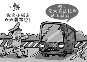最近,在杭州市左岸花園小區(qū)門口,每天停著一輛破舊的小面包車,它的任務(wù)就是給一輛法拉利F430占車位。法拉利的車主說,家有4輛車,兩輛停家里,一輛停地下車庫(kù),一輛停上面,但小區(qū)車位太緊張,“我也是被逼出來(lái)的!”