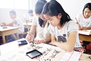 書(shū)畫(huà)相輔相成 為弘揚(yáng)“書(shū)畫(huà)同源”的中國(guó)傳統(tǒng)藝術(shù),本中心常年班采取書(shū)畫(huà)相輔相成的教學(xué)方法,毛筆與硬筆相結(jié)合、書(shū)法與繪畫(huà)教學(xué)交替進(jìn)行,以求事半功倍的教學(xué)效果。